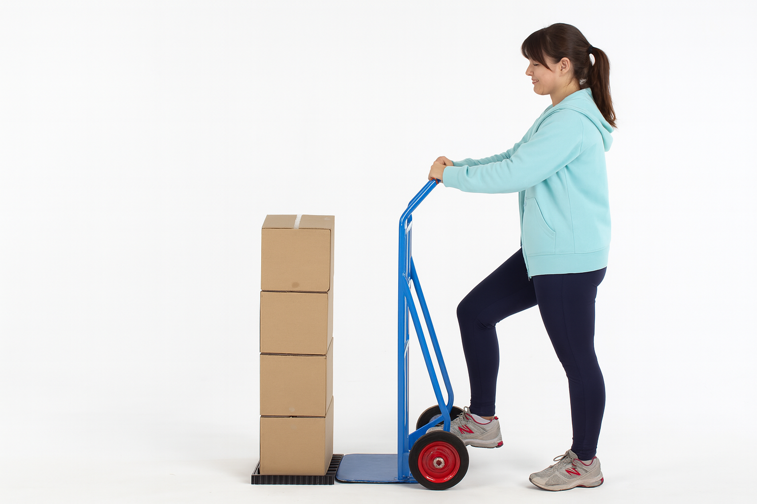 Your go-to for moving unit-loads. Choose wheels to suit floors (soft for hard surfaces, hard wheels for carpet/rubber). Keep handles at a neutral height to avoid stooping. -